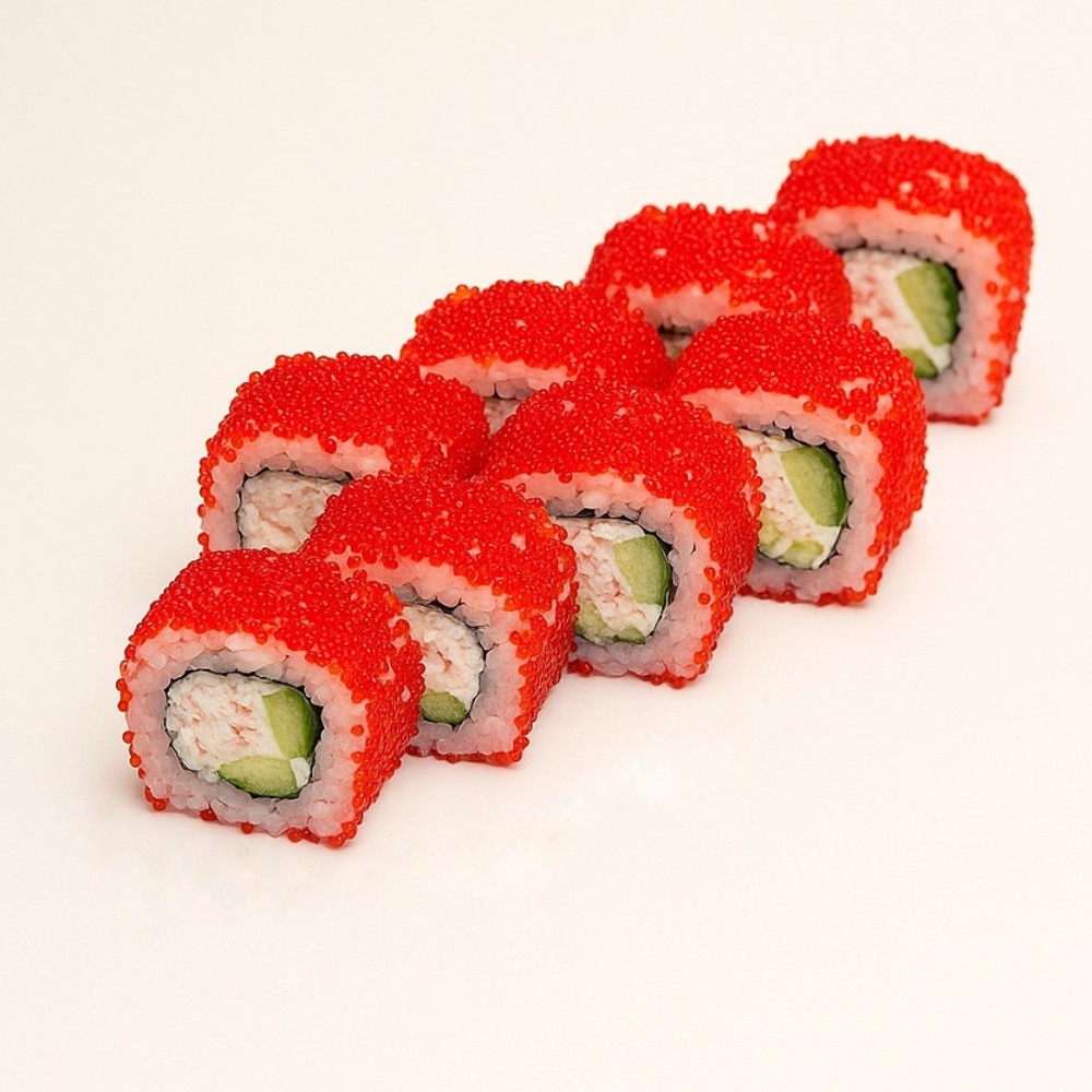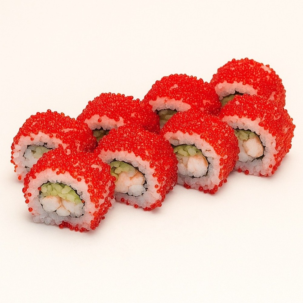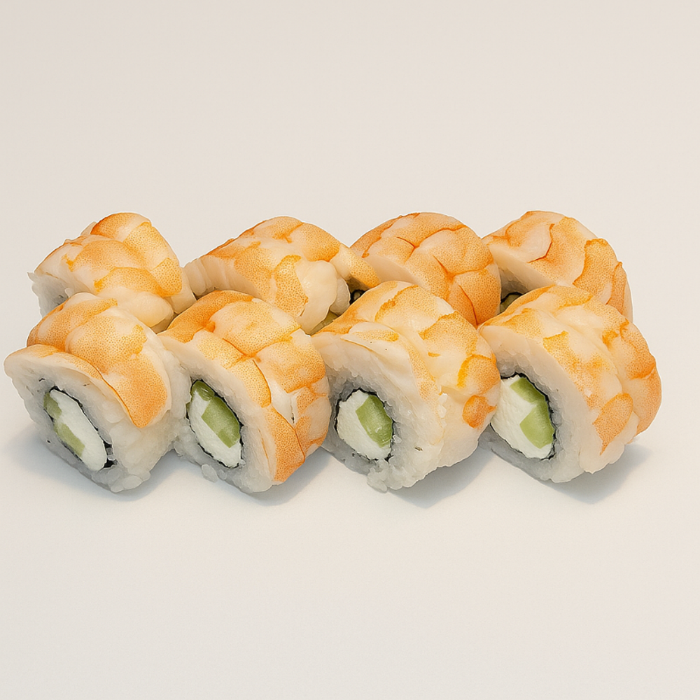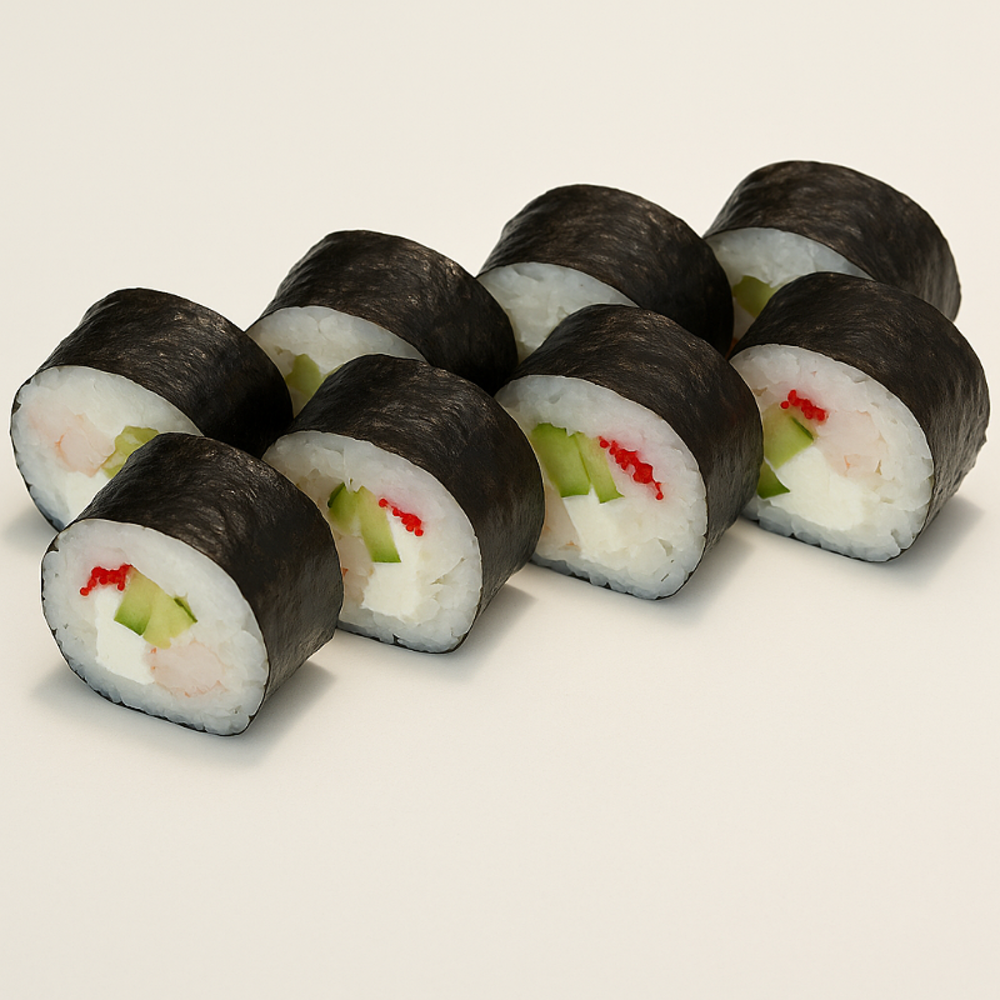 - Nori, rice, cream cheese, cucumber, Tobiko, shrimp